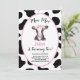 Rosa Blommigt Black White Cow Skriv ut 2:a födelsedagsinbjudan
