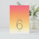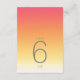 Bakgrunden till alla biet i denna minimalistiska bröllop-uppsättning är en öga-fångstgradient av färg från djupt ro rosa genom tangeriner och gult till vitt. Det bröllop bordsnummer-kort som visas här har ett slimmat, modernt layout och contemporary sans serif-teckensnitt för att öka dess attraktionskraft. Lägg enkelt till datum för bordsnummer, initialer och bröllop med hjälp av den angivna mallen. Sök i ID741 om du vill se hela uppsättningen med matchande produkter i Hett Summer eller välja en av de andra tillgängliga övertoningskombinationerna till kostym-paletten för bröllop färg.
