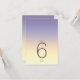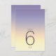 Bakgrunden till alla biet i denna minimalistiska bröllop-uppsättning är en öga-fångstgradient av färg från indigo till persiko och palmast gult. Det bröllop bordsnummer-kort som visas här har ett slimmat, modernt layout och contemporary sans serif-teckensnitt för att öka dess attraktionskraft. Lägg enkelt till datum för bordsnummer, initialer och bröllop med hjälp av den angivna mallen. Sök-ID741 om du vill visa hela uppsättningen med matchande produkter i Indigo Sunset eller välja en av de andra tillgängliga övertoningskombinationerna till kostym-paletten för bröllop färg.