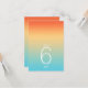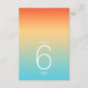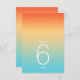 Hela biet i denna minimalistiska bröllop-sats har en öga-fångstgradient av färg från tangerinisk orange genom smörets gult till turkos. Det bröllop bordsnummer-kort som visas här har ett slimmat, modernt layout och contemporary sans serif-teckensnitt för att öka dess attraktionskraft. Lägg enkelt till datum för bordsnummer, initialer och bröllop med hjälp av den angivna mallen. Sök-ID741 om du vill se hela uppsättningen med matchande produkter i tropiska himlar eller välja en av de andra tillgängliga övertoningskombinationerna till kostym i bröllop-färg-paletten.