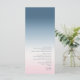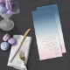 Bakgrunden till biet i denna minimalistiska bröllop-uppsättning är en öga-fångstgradient av färg från tryckblått genom mjuk rosa och vitt. Det här menykortet i bröllop har ett slimmat, modernt layout och contemporary sans serif-teckensnitt för att öka dess attraktionskraft. Lägg enkelt till menyval, initialer och bröllop med hjälp av den angivna mallen. Sök-ID741 om du vill visa hela uppsättningen med matchande produkter i Prussian Himlar eller välja en av de andra tillgängliga övertoningskombinationerna till kostym-paletten för bröllop färg.