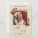 Moody Rust Rose Foto Höst Bröllop Spara Datum. Meddela din kommande vigsel med detta eleganta och romantiska höstbröllop "spara datum". Den fantastiska designen har ett anpassat parfoto ramad av en delikat guld fyrkantig ram och stämningsfull akvarell buketter av rost och burgunder röda rosor. Denna personliga fotomeddelande är det perfekta sättet för förlovade par att dela sin kommande höst bröllopsfirande med familj och vänner. Det är en del av ett bröllop tema för brevpapper och tillbehör perfekt för höst och vinter bröllop.