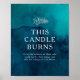 Denna stämningsfulla akvarellaffisch för bröllop med texten "det här ljuset brinner" är perfekt för ditt enkla tropiska bohemiska bröllop. Den är designad med minimalistiska vita tropiska blad och en fantastisk mörkblå-grön bakgrund.