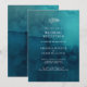 Denna moodiga oceaniska akvarellinbjudan till bröllopsmottagning är perfekt för din enkla tropiska bohemiska mottagning. Den är designad med minimalistiska vita tropiska blad och en fantastisk mörkblå-grön bakgrund.
