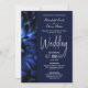 En moody bröllopsinbjudan till kostym par om blått blommigt som är designad för elegant, som planerar att utväxla löften på en plats och fira med middag, dans och skål med vänner och nära och kära på en annan plats.