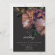 DETTA ÄR ETT ENDA INBJUDANDE, MED MOTTAGNINGSINFORMATION OCH YTTERLIGARE INFORMATION PÅ BAKGRUNDEN. Fira kärlek i tidlös elegans. Vår fängslande bröllopsinbjudan har en sofistikerad svart bakgrund, perfekten palett för en fängslande bukett. Föreställ dig ett arrangemangt hörn som påminner om ett mästerverk i Baroque, som är målat i rikens oljetoner. Rutburguni och mjuka blommor med mörkens oliv grönt löv som skapar en känsla av tyst opulens. Den här fantastiska designen ställer in scenen för en intim samling fylld med hjärtliga ögonblick och omhuldade minnen. Skapat av Farmhouse Press.
