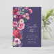 Moody Blommigt Spara datum. Ställ in scenen för bröllop med den mjuka elegansen i det här spara-till-datum-anslagskortet, där en fantastisk sidbukett med handmålade blommigtar tillför tidslös skönhet. Med lush ro, anemoner, kosmos, daisy och delfiner i djup , burgundi, blues, och lila, kompletterad med eukalyptus och emerald grey, blandas romantik och sofistikering utan problem. Med marin blå bakgrund kan blommigten av riken skina medan det finstilta skriptet markerar ditt speciella datum. Anpassa varje detalj, från ordalydelsen till stilar och storleken på teckensnittet, för en design av ett slag som reflekterar bröllop-estetiken. din stora dags upphetsning med en spara-till-datum som är lika minnesvärd som själva ögonblicket. Obs! Texten är elfenben som matchar samlingen men kan enkelt ändras.