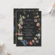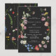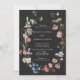En söt moody Bho-bröllopsinbjudan med en asymmetrisk blommigt av hästskos andedräkt med färgstark vattenfärg Nederländska fortfarande livsblommor på träkolbakgrund. Baksidan har en lös mönster av blommor.