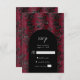 Den här eleganten har en moody bakgrundsbild av fuktmönstret för vintage faux velvet blommigt i burgundy och svart. Initialer "osa" visas i kalligrafiskript för grått i elegant, med anpassade och blanksteg för gästernas svar nedan. Ett matchande mönster för burgundy och svart dämpning visas på den motsatta sidan.
