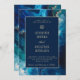 Coastal Moody Blue Marbled Wedding Invitation – Navy & Ocean Blue Elegant Beach Wedding Template with Gold Tone Accents