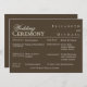 The front side clearly lists all Wedding Ceremony participants, while the reverse features a detailed Ceremony Timeline and Order of Service. This minimalist and high-contrast design ensures your guests feel included and informed, serving as both a functional guide and an elegant keepsake of your memorable event. It is the perfect final touch for your cohesive dark wedding stationery suite. (