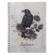 Set the tone for a mysterious and creative writing session with this personalized spiral notebook. It features a detailed black crow perched among deep purple florals and delicate foliage rendered in a muted vintage palette with stone textures. This is a thoughtful way to capture daily reflections or a unique gift for a nature lover.