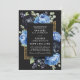 Ange scenen för en skrämmande elegant-händelse med den här Gothic-inbjudan. En lush och lyxig bröllopsinbjudan till blommigt med en ram av svart och blå persilja och blåbär mot svart bakgrund. Det är perfekt för ett dramatiskt och oförglömligt firande. De är idealiska för älskare i mörk romantik och tidlös allure. OBSERVERA: guld som ingår i den här utformningen är INTE REAL-folie.