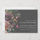 En modern perfekt för bröllopsinbjudan till blommigten för ett fallbröllop, med en moody känsla. Det här vågrät har en vattenfärgad blommigt-bukett av muterade lila-/äggplantblommor och orange-blommor med grön färg på mörk grått-bakgrund. Din information om bröllop finns i modernt vitt teckensnitt. Bakern är i fast muterad lila/äggplanta.