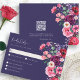 Moody Floral RSVP-kort. Detta elegant designade svarsbrev säkerställer en smidig gästupplevelse där genomtänkta detaljer möter modern bekvämlighet. Den djupa marinblå bakgrunden framhäver den vattenfärgade blomstersviten, medan framsidan har utrymme för gästerna att ange sin närvaro och måltidsval, vilket gör planeringen enkel. På baksidan finns en QR-kod som ger ett strömlinjeformat sätt för gästerna att svara online, vilket säkerställer snabba och enkla svar. Helt anpassningsbart kan du anpassa formuleringen, teckensnittsstilarna och storlekarna för att matcha ditt bröllopstema. Para detta svarsbrev med hela samlingen för en vackert koordinerad svit som kombinerar klassisk elegans med modern funkt