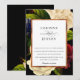 Vackra målade vintagar inspirerade djärva trädgårdsblommor och löv i marinen, rött och grädde på moody svart bakgrund. Inbjudan innehåller ett trendig center ram med kopparaccent.