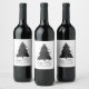 Moody God jul | Onyx Silvery Charcol Träd Vinflaska Etikett