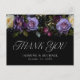 Moody blommigt bröllop tackar dig för att du har ett vykort med en översta gräns av elfenben, lila och blommor med lush grönt blad och mörk bär. Utformningen av blommigten för lila i elegant kompletteras av "tack" som visas i modern typografi. Anpassa bröllop-tacket som du vykort med ditt namn, bröllop-datum, adress och skrivet eller handskrivet meddelande. Den gotiska blommigten bröllop-tacket du vykort är perfekt för ditt fall eller Halloween bröllop. Designad att samordna med vår Moody samling i bröllop i Göteborg-Blommigten.