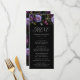 Elegant moody blommigt bröllop-meny med en övre gräns av lila- och burgblommor, spola gröntens blad och mörk. Menyn lila blommigt bröllop kompletteras av elegant, modern typografi. Anpassa framsidan av menyn för den gotiska blommigten bröllop med alternativen namn, bröllop datum och meny. Baksidan av menyn lila blommigt bröllop visningar ett matchande blommönster. Designad att samordna med vår Moody samling i bröllop i Göteborg-Blommigten.