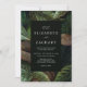 Denna moderna botaniska inbjudan har en mörk, en moody bakgrund av höst löv i gröntens nyans och brunt. Anpassa den med namnen av bruden och brudgummen och andra detaljer om bröllop i vitt på en grön off-black-rektangel. Den omvända sidan är en matchande skuggning av off-black. Idealisk för ett fallbröllop!