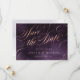 Romantiskt handskriftsskript i faux ro guld färg på moody djupa vattenfärgsbakgrund, elegant och sofistikerade underbara bröllop spara datum-kort för lila, höns- eller vinterbröllop och vintage bröllop kväll. Visa alla matchande delar i samlingen.