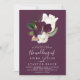 Denna moody lila blåser plumbröllopsinbjudan är perfekt för ett modernt bröllop. Blommigten för elegant har mörk lila av plommon och vita tulpanblommor med emerald grönt löv och guld löv accents.