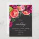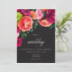 Moody Luxe Floral Vibrant Pink Black Wedding Inbjudningar