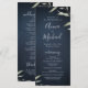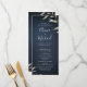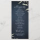 Modern chic minimal vattenfärgsutformning av botaniskt bladgrönt på moody marinblå bakgrund, enkel och elegant med kalligrafi namn, underbara runda bröllopsprogram kort för modernt bröllop, rustiskt bröllop och botaniskt trädgårdsbröllop på sommaren och under natten. Visa alla matchande biet i samlingen