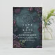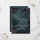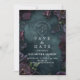 En dramatisk och elegant perfekt för par att planera ett moody, romantiskt bröllop. Med djupa juveltända blommigtar mot en texturerad bakgrund framkallar detta estetiskt mysterium, intimitet och tidlös kärlek. Perfekt för fall, gotisk eller okonventionell firande. Anpassa den med namn, datum och plats.