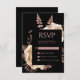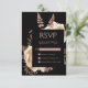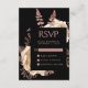Den här eleganten har ett moody skyddskort för bröllop OSA en lush, romantisk blommigt buquet i elfenben med ro faux foil och glitter foliage på svart bakgrund. Anpassa rosan ro i typsnitt snyggt på en svart rektangel. Kortets baksida är starkt svart.