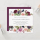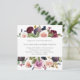 Bröllopbjudan till moody blommigt med en top- och grund-gräns med vattenfärgade färgade fikon, bär och ro i plommon och lila. Baksidan är ett djupt plommon färg och kan ändras till vilket färg som helst. Lilans djupa skuggor gör denna inbjudan underbar för ett bröllop i fallet.