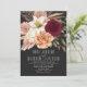Elegant, modern, boho-chic, moody romantisk blommigt burgundi, terracotta och svart bröllop all-i-ett-inbjudan med vackra blommor från ro och pampasgräs. Lägg till information om bröllop längst bak!
