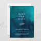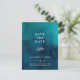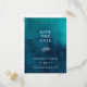 Den här moody vattenfärgen sparar datumet som vykort är perfekt för din tropiska boho bröllop. Det är designat med minimalistiska vita tropiska löv och en häpnadsväckande bakgrund av mörk blått grönt.