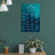 Detta moody alfabetiska sjökortet för havsvatten är perfekt för din tropiska boho bröllop. Det är designat med minimalistiska vita tropiska löv och en häpnadsväckande bakgrund av mörk blått grönt.