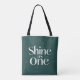 Honor your gals with Moon Glow Tote! This 8x8-inch tote showcases an emerald gradient with a starry moon on the front, and “Shine as One” in opal white with constellations on the back. Ideal from TrendyTeeShq!