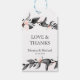 Designad för att samordna med vår bröllopsinbjudan till Moonlight Bloom, har märkrna "kärlek och tack" och ditt namn och bröllop-datum med elegant, med grenar av målade vattenfärgblommor i klassisk svart, grått och rosa. Märkrna återgår till koordinatsystemet rosa färg. Bifoga de här märkrna med blommigt till dina bröllopsfavoriter för en elegant och ett klassligt sätt att uttrycka kärlek och tack för.