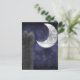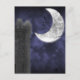 Ett halvmåne måne hänger tungt över ett enda slott torn medan fladdermöss snurrar genom molnen och stjärnorna skiner i himlar nattetid.