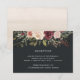 Designad för att samordna med vår Moonlight Garden vattenfärg blommiga brölloppskollektion, detta eleganta botaniska mottagningskuvertkort har en spray av vattenfärg målade mum- och rosblommor i rika höstfärger marsala, burgunderplommon, rosablom och kräm, som prydar era bröllopsdetaljer i vitt. Ett elegant bröllopsinbjudningskuvertkort i chic off-svart för höst- eller vinterbröllop.