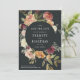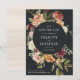Vår moderna blommigt, Moonlight Garden, sparar datumkortet ramar dina uppgifter om nyckel bröllop, inklusive datum och plats, i ett lush botaniskt gräns av vattenfärgen ro morsa, grönt löv och löv. Dusty high hues of burgundy, marsala, och elfenben pop mot en mjuk svart bakgrund. Anpassa med namn, bröllop-datum, plats och bröllop webbplats med hjälp av fält.