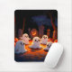 En grupp av berömvärda spöken sitta tillsammans på marken, som delar skräckhistorier om skräck. Deras lekfulla uttryck och ärliga atmosfär skapar en roligt, ljusare Halloween-scen.