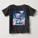 En barns t-shirt med ett snyggt tryck av en flytande nalle sitta på ett mjukt pastellmoln. Björnen har ett glödande blått hjärta som ser ut som kristaller. Bakgrunden visar en drömmande natt himmel med rosa, blå och gyllene stjärnor. Ovanför björnen flyter en stor, rosa måne som liknar en ballong, med små hjärtan som härstammar från den. Hela konstruktionen är inställd i mjuka, pastelltoner, skapande en magisk, sängdags-atmosfär. Den här t-shirt är perfekt för små drömmare - mjuka, bekväma och charm fullt, perfekt för daglig bära och söta drömmar. 🌙 ✨ 🐻 💙