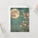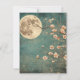 En ömtålig körsbärsliknande blommar går över natten under ett ljusstrålande fullt måne, mot en strålande blå bakgrund. Det här hälsningskortet fångar naturens fridfulla skönhet och blandar vintagens charm med välsmakande elegans. Perfekt för älskare av bioestetik, japaninspirerad konst och mononlit blommigt scener.