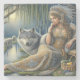 Under månljusets stilla glöd vilar en serenkvinna av en skogsström, hennes elegant uteslöt övervägande. Hon är försedd med en ornat headdress och finack som ekar skogen i mönster, och delar en tyst gemenskap med en majestät grått-varg. I bakgrunden smälte vargernas skuggor med det skymda träd, som skapade en harmonisk blandning av vild och fredlig reverie.