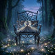 This enchanting visual art captures a serene fairy princess standing beneath a luminous full moon, surrounded by drifting golden fireflies and soft midnight clouds. Her flowing celestial gown cascades outward in intricate floral lace patterns, blending deep navy, silver-blue, and soft ivory tones into a dreamy, ethereal palette. The delicate glow of starlight and fluttering butterflies creates a whimsical, storybook atmosphere that feels both romantic and otherworldly. With its cottagecore-meets-fantasy aesthetic, this design evokes quiet magic, feminine strength, and moonlit wonder. The composition balances dramatic night sky contrast with soft, glowing highlights, giving it a boho fairytale elegance that feels timeless yet on-trend. Perfect for lovers of celestial art, dreamy fantasy, and graceful feminine silhouettes, this artwork invites you into a peaceful, star-kissed realm of imagination and light. AI generated artwork.