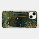 En fantastisk och förtjusande skogsplats med en djup grönt och guld palett. Tall, stiliserad träd med gyllene trunkar och grenar når fram till en mörk himmel, deras armar och ben som adorberats med glödande, sfäriska frukter eller blommar. Förgrundsbilden är en tät tapesi av detaljblad, fylld med stiliserade blommor och växter i nyans av grönt, grädde och skuggande guld. Ljusbågar flyter genom luft och vila på marken och skapar en magisk atmosfär som påminner om en drömlik skogsmark. Den övergripande sammansättningen är mycket dekorativ, med ett platt perspektiv och intrikat mönster som fyller arbetsytan.