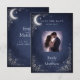 Announce your wedding with a stunning celestial woodland save the date card. Featuring a luminous silver crescent moon, engraving-style vines, and subtle star accents over a midnight navy backdrop, this design offers a romantic and elegant way to share your wedding date. Perfect for evening weddings and forest-inspired celebrations.