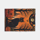 En slimmad svart katt sitter under ett glanande fullt måne och kastar en enigmatisk silhuett mot den vibrerande orangen himmel. Silhouetted träd och pumpor som är spridda nedanför tillför stollig en aning till scenen. Visste du att katter i gammal Egypten omringades som helig och ofta var associerade med gudinna Bastet, som representerade skydd, njutning och bra hälsa? Den här teckningen fångar Halloween-nattens mystik och kattdjurets varaktiga anslutning till övernaturen.
