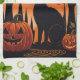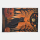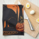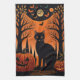 En slimmad svart katt sitter under ett glanande fullt måne och kastar en enigmatisk silhuett mot den vibrerande orangen himmel. Silhouetted träd och pumpor som är spridda nedanför tillför stollig en aning till scenen. Visste du att katter i gammal Egypten omringades som helig och ofta var associerade med gudinna Bastet, som representerade skydd, njutning och bra hälsa? Den här teckningen fångar Halloween-nattens mystik och kattdjurets varaktiga anslutning till övernaturen.
