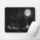 Ett tyst, månbelyst landskap som återges i gråskala med hög kontrast: ett fullt hänger över en fortfarande reflekterande damm, ett silhuetterat träd kastar djupa skuggor och ett mjukt gevär från spegel silver över stillastående vatten.
