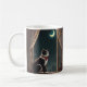 En scen med en tuxedo-katt sitta genom ett fönster och med blickar upp vid måne. Kattens röda band tillför lite elegans, medan vintagen stil framkallar en känsla av nostalgi och charm. Kejsaren måne utanför kastar en mild glöd som belyser kattens fredliga besinningstid.